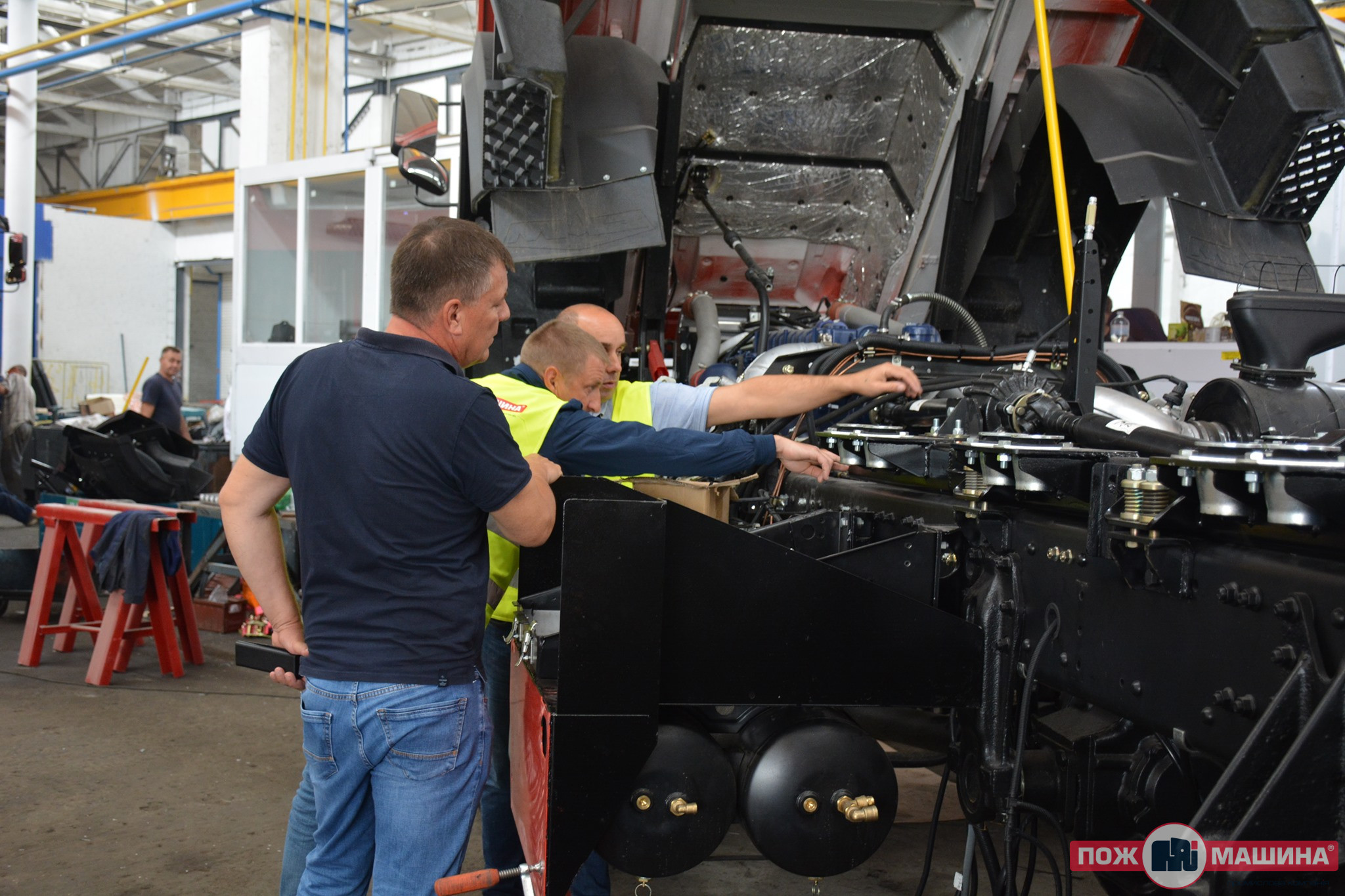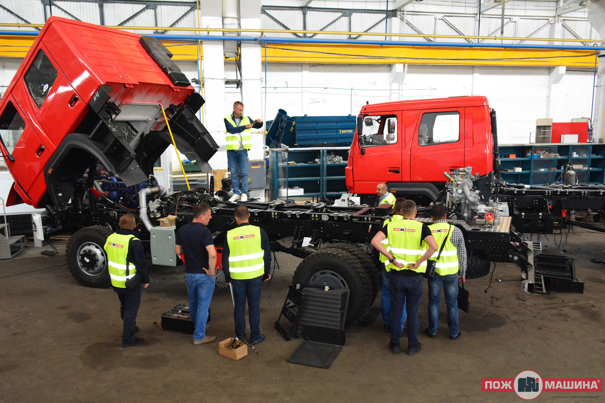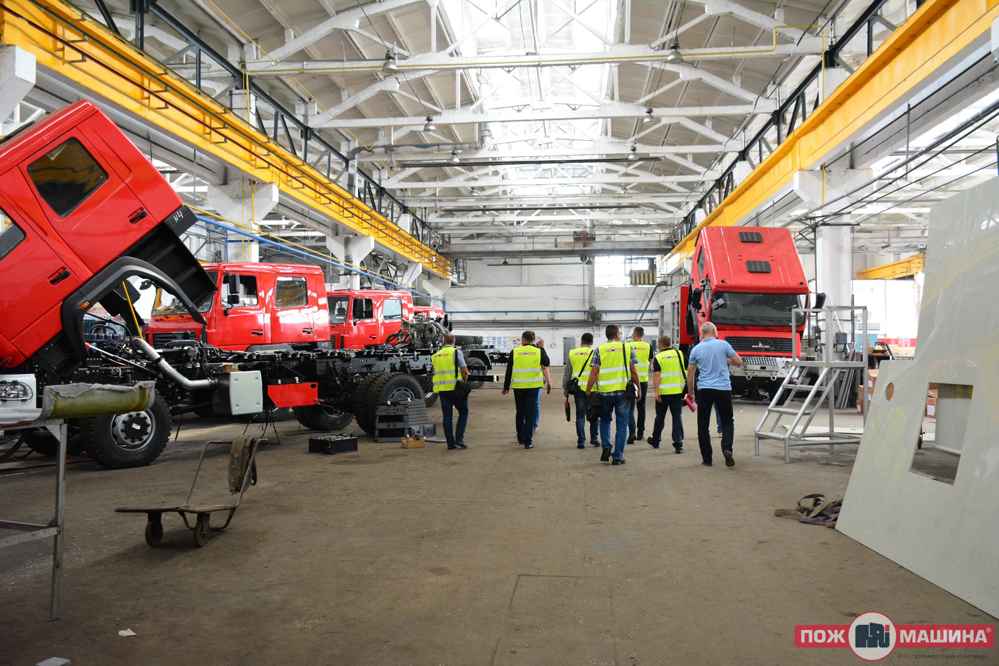 The purpose of the visit was to get acquainted with the production of new fire trucks and their compliance with the required technical characteristics.