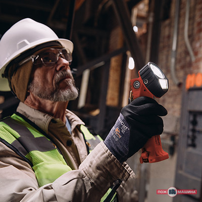 - Перемикач із гумовою купольною кнопкою, що забезпечує легке керування навіть у важких рукавичках; оснащений індикатором стану батареї.