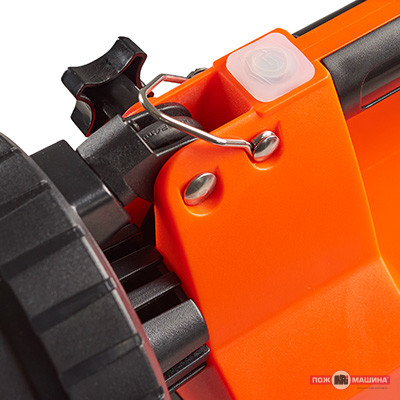 Захист від води IPX4. Велика кнопка з індикатором стану батареї: при роботі червоне миготіння сигналізує про необхідність зарядки, а зелений колір при заряджанні вказує на повний заряд. Корпус з ударостійкого термопласту ABS; зручна ручка. Акумулятор: літій-іонний, 7,4V, 5200 мАг, з вбудованою системою безпеки.